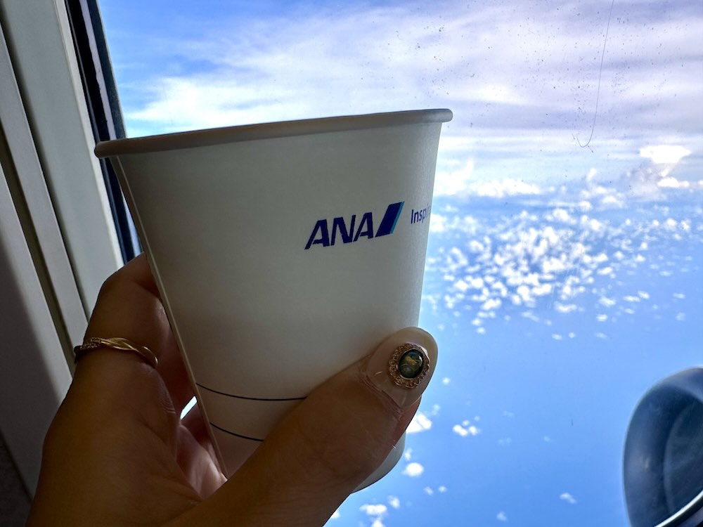 帰りは飛行が安定していたので、コンソメスープ飲めました。